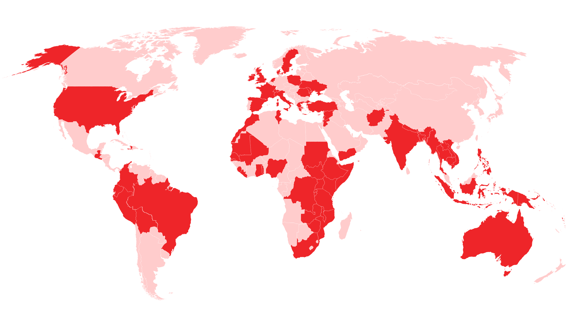 Vi finns i 46 länder över hela världen. Här är de länder som ActionAid Sverige i dagsläget har nära samarbeten med. Längst ner på sidan ser du en lista över samtliga länder där ActionAid har verksamhet.