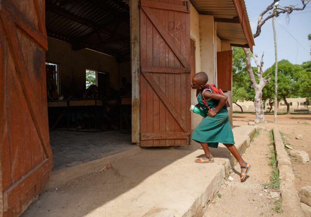 Eunice är 9 år och går i grundskolan i Upper East Region i Ghana. Hon vill bli sjuksköterska när hon blir äldre. Varje morgon börjar hon dagen med att hjälpa sin ensamstående mamma i hemmet innan hon går till skolan. Hon sopar gården, ordnar sina saker och förbereder sig för lektionerna innan skolans samling börjar.